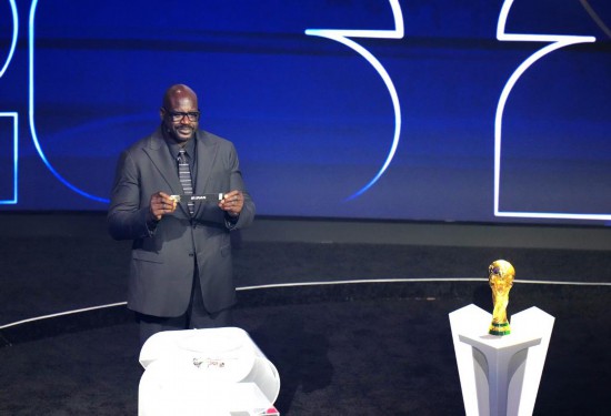 2025年12月5日,2026美加墨世界杯小组赛分组抽签仪式在美国首都华盛顿举行。图为抽签嘉宾奥尼尔展示写有伊朗队的签条。新华社记者 吴晓凌 摄