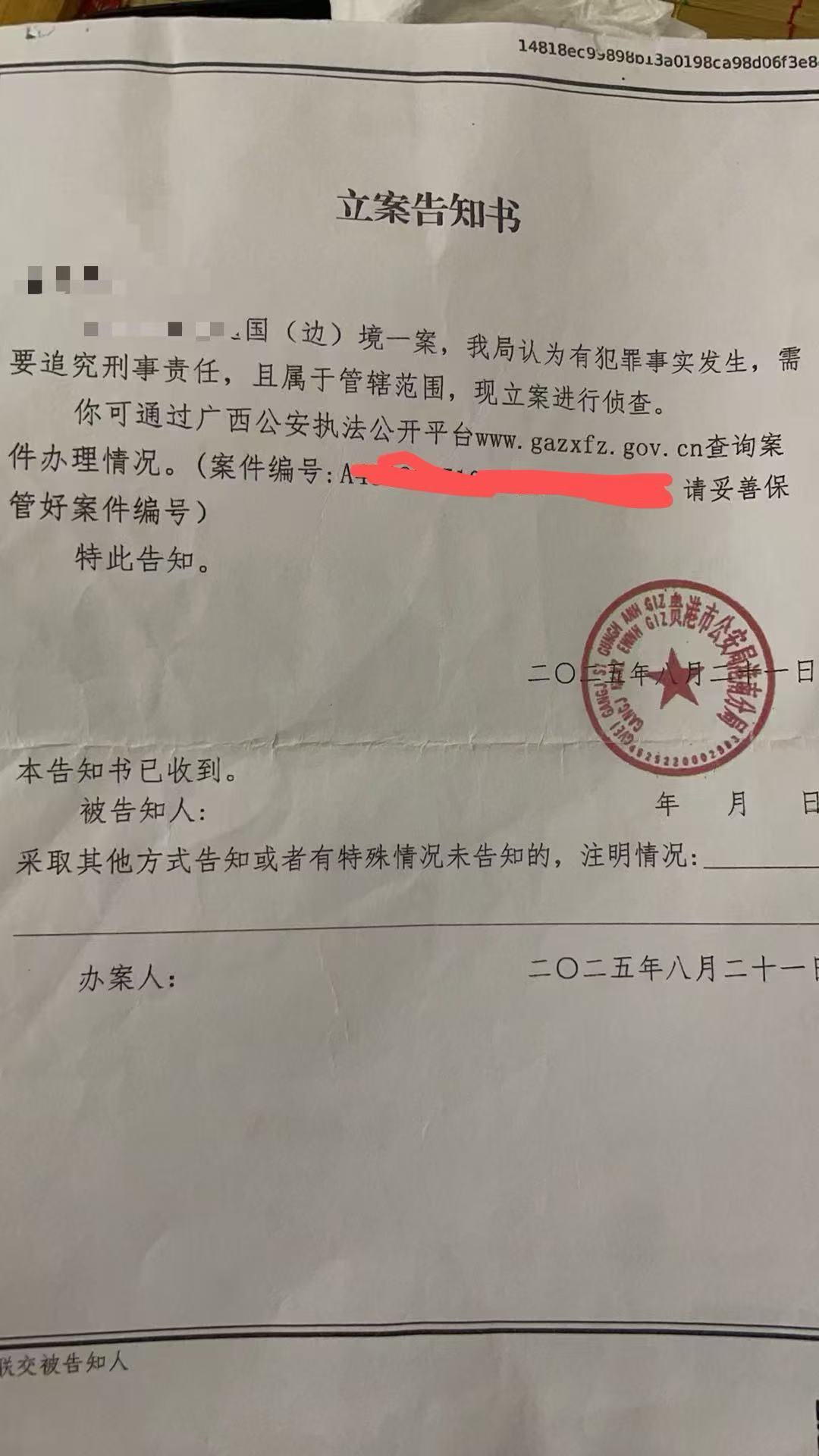 事发后,蒙女士于2025年8月5日向辖区派出所报警。8月21日,贵港市公安局港南分局以“有犯罪事实发生,需要追究刑事责任,且属于管辖范围”正式立案。