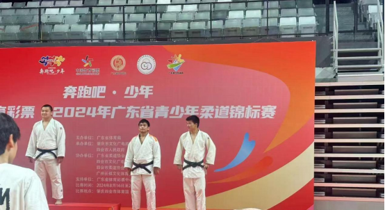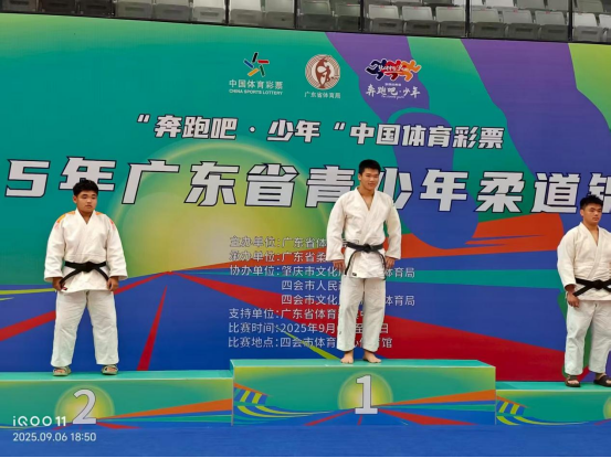 △王禹森(中)在2025年广东省青少年柔道锦标赛上领奖