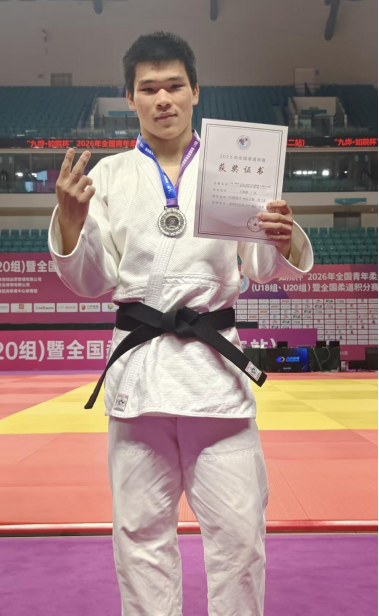 在刚刚落幕的2026年全国青年柔道锦标赛(U18组、U20组)暨全国积分赛(第二站)中,四会籍柔道运动员王禹森代表国家青年柔道队(广东共建组)出战,在U18组男子-90公斤级项目中奋勇拼搏,最终斩获第二名的优异成绩,为家乡再添荣誉!