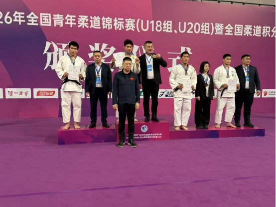 △王禹森(左一)在2026年全国青年柔道锦标赛(U18组、U20组)暨全国积分赛(第二站)上领奖